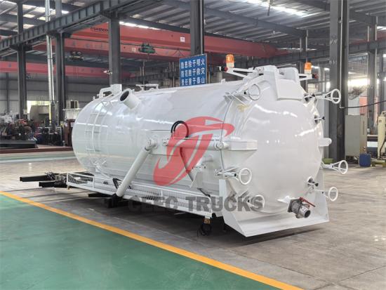 10,000L Vacuum Truck Tanker Bodies Kit10立方米污水罐车车体组件,也称为10000升真空吸污车车体套件、10立方米污水罐车车体组件、10立方米污水吸污车上部结构、五十铃污水罐车上部车体。 10立方米污水箱箱体组件 这是一款用于市政环卫部门吸污车的上部结构,旨在高效管理废物和运输液体。该套件容量达10,000升,可为各种液体提供充足的存储空间。与专用车辆底盘组装后,它将成为从环卫到建筑等众多行业不可或缺的设备。