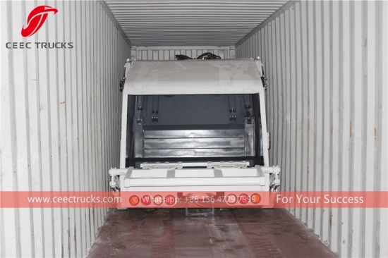 接到垃圾压缩车的订单后,我们非常重视客户的需求,对这辆垃圾后装车的尺寸进行了特殊设计,因为它需要用40英尺的集装箱运输。因为从中国到佛得角没有散货船或滚装船。
