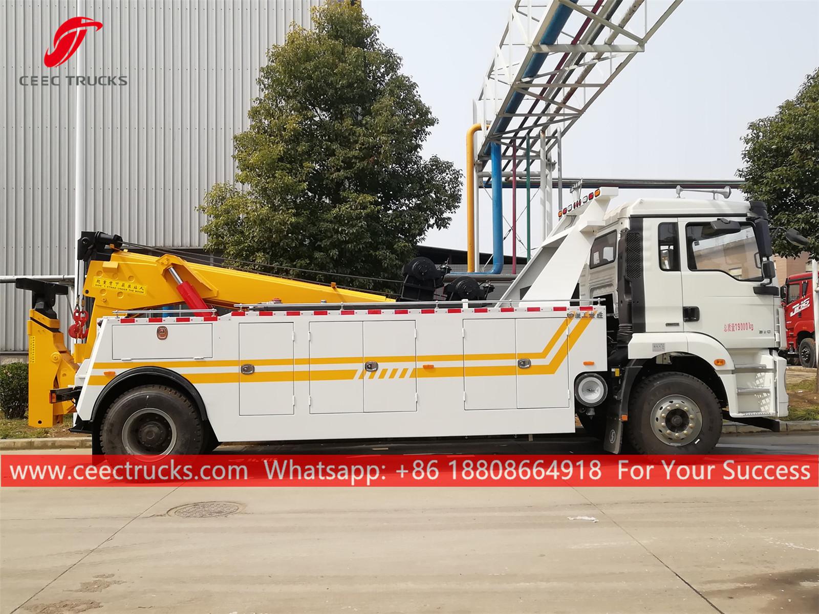 SHACMAN 12 吨回收卡车,SHACMAN 4x2 底盘,FAST 9 档变速箱,WEICHAI 300HP 柴油发动机,带液压缸工作的起重臂,喷漆和标识取决于要求。
