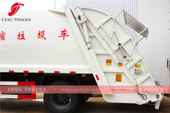 100% 全新生产的东风 14cbm 垃圾压缩车,使用康明斯品牌柴油发动机,发动机功率可选 170HP 和 190HP,手动 6 档变速箱,操作简便,坚固的优质钢材料压实机机身,内外防锈喷漆,所有标识均按要求