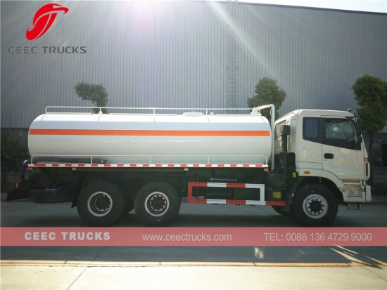 福田 20000 升油罐车,采用福田 LHD 和 RHD 底盘、CUMMINS 270HP 发动机、FAST 9 档手动变速箱,操作简便,5mm 厚度高强度钢水罐车材料延长了水罐车的使用寿命