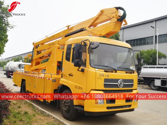 22 米载人起重车,东风品牌 4x2 底盘,8 档手动变速箱,康明斯 190HP 柴油发动机,喷漆和标识取决于要求,客户语言控制箱。