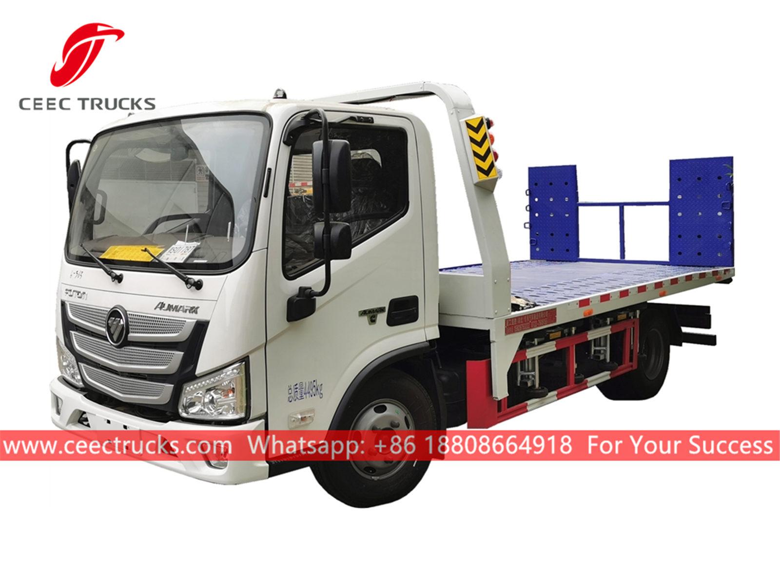 福田 3 吨道路清障车,采用 4x2 底盘、手动 5 档手动变速箱、康明斯 130HP 柴油发动机、带液压缸工作的长平台、喷漆和标识取决于要求。