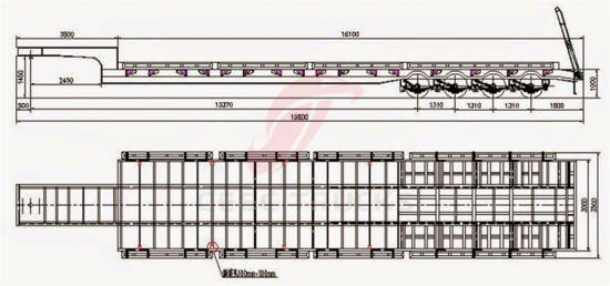 一个†低平板半挂车系列包括平板式、凹梁式、轮胎外挂式等,车架为梯形,纵梁截面为工字形,具有刚度大、强度高等特点。