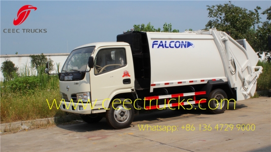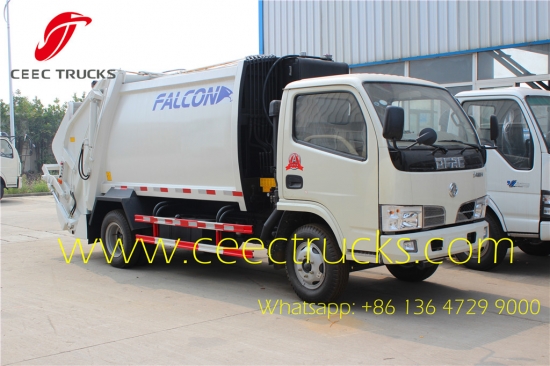 东风垃圾压缩车,东风4*2左舵/右舵底盘,3300mm轴距,5档手动变速箱,意大利多功能液压控制阀,碳钢材质罐体,容量4立方米