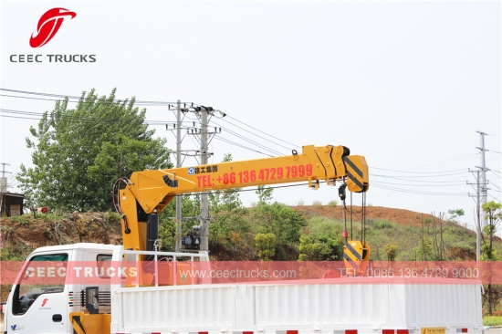4吨伸缩臂起重机卡车热销,朝柴120马力柴油发动机,5档手动变速箱,左舵和右舵可选。配备4000公斤伸缩臂起重机,另有遥控器可供选择。