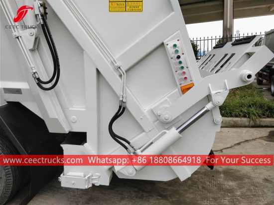 缅甸客户购买五十铃 4cbm 后装载液压垃圾压实机、五十铃 98HP 柴油发动机、MSB 5 档手动变速箱、PLC 控制箱、喷漆和标识取决于要求。