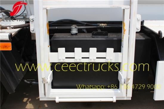五十铃4-5m³厨房垃圾集装箱车采用五十铃120HP底盘,3360mm轴距,高强度碳钢罐车,容积可达5000升,我们的五十铃卡车广泛出口缅甸、菲律宾