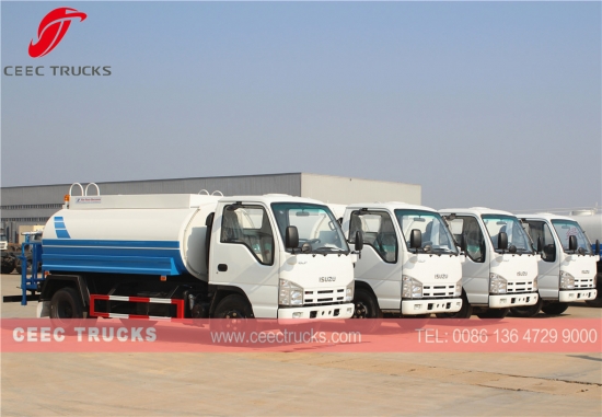 高品质五十铃品牌迷你水凉亭畅销亚洲国家,采用小型 3360mm 轴距底盘,日本五十铃技术 98HP 发动机,MSB 5 档手动变速箱,5CBM 高强度碳钢油罐车,防锈漆