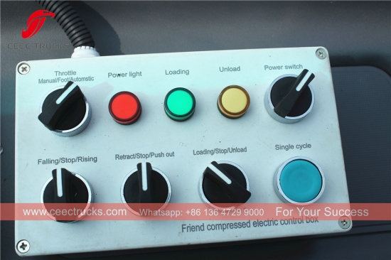 所有标准配件:垃圾箱升降机、梯子、警示灯、紧急停止按钮、 扶手、灭火器、基本工具包、英文说明书…… |