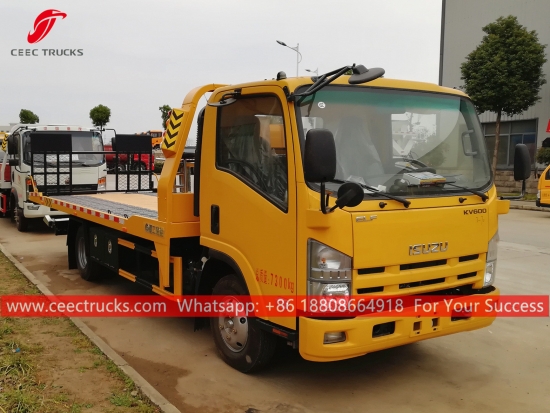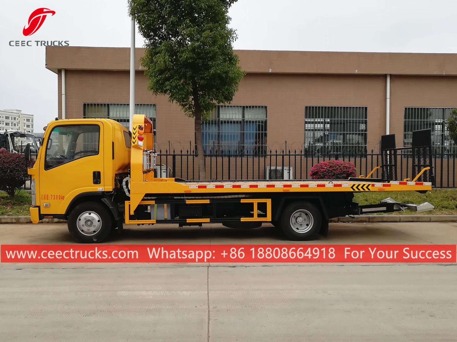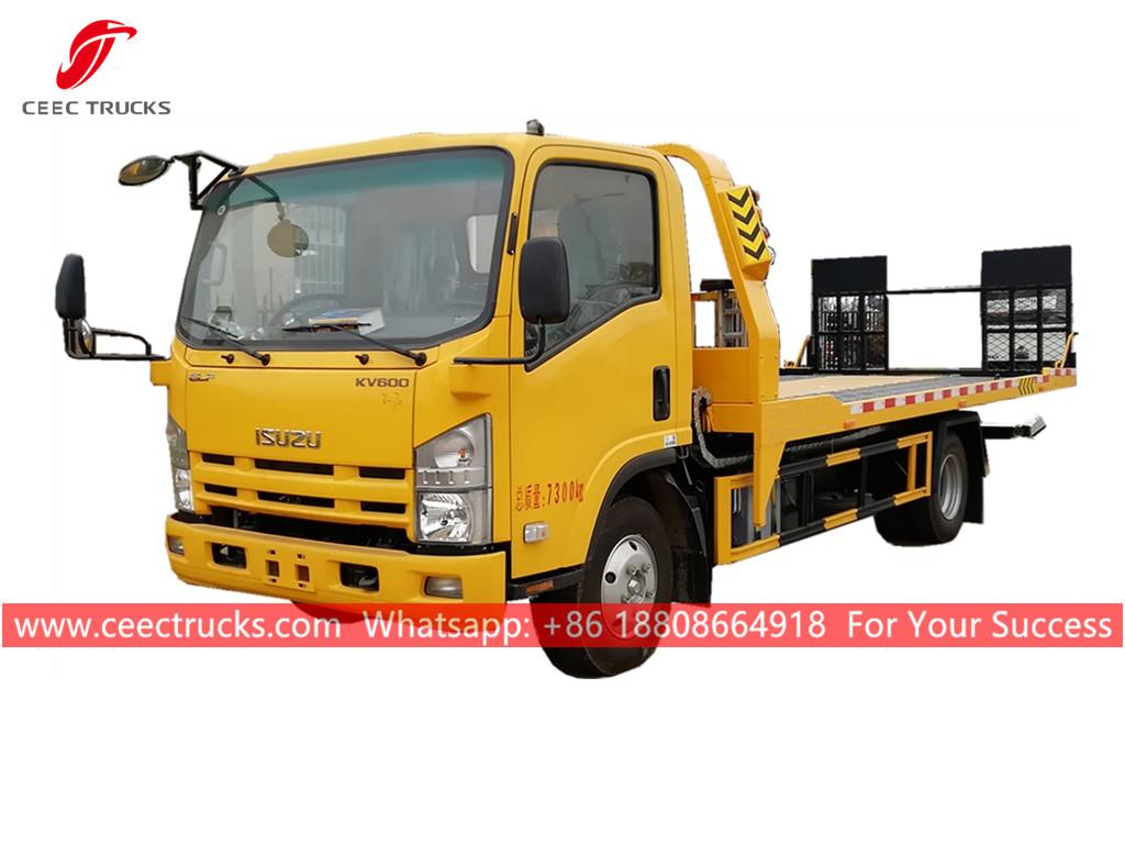 五十铃道路清障车,五十铃 4x2 底盘,手动 5 档手动变速箱,五十铃 130HP 柴油发动机,长平台带液压缸工作,喷漆和标识取决于要求。