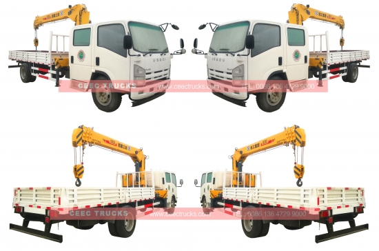 双排驾驶室五十铃 6.3T 起重机卡车,五十铃技术 EURO 4/5 柴油发动机 190HP,手动 MLD 6 档变速箱,操作简便,配备 6300kg 伸缩式动臂起重机,也有遥控器可供选择,货箱长度范围从 3000mm 到 4500mm