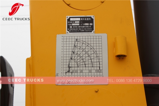 起重机可采用 Palfinger(加拿大)、Unic(日本)、徐工(中国顶级品牌)、中联重科等知名品牌。