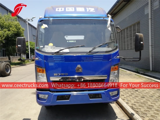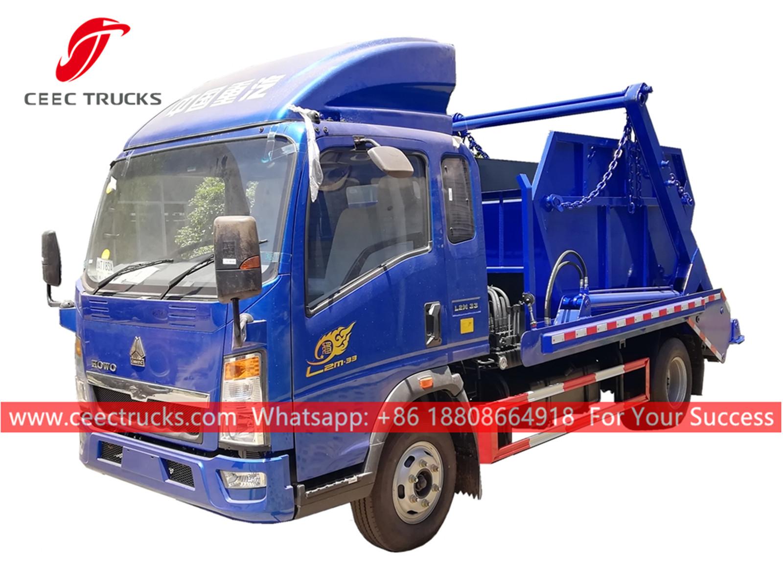 HOWO翻斗式垃圾车(6000升) (也称为 右舵翻斗装载机、豪沃摇臂垃圾车、 带容器的液压翼臂, 右舵摆臂式垃圾车,垃圾收集车,HOWO 翻斗装载机)广泛应用于环卫市政、工业企业及居民小区。该车配备多个垃圾箱,避免运输过程中的污染。改装部件可与底盘分离,维护方便,并保持了车辆的机动性和可读性。如果您对垃圾车有特殊需求,请联系我们。我们可以设计和为您改装。我们还可以为您添加动力转向和空调
