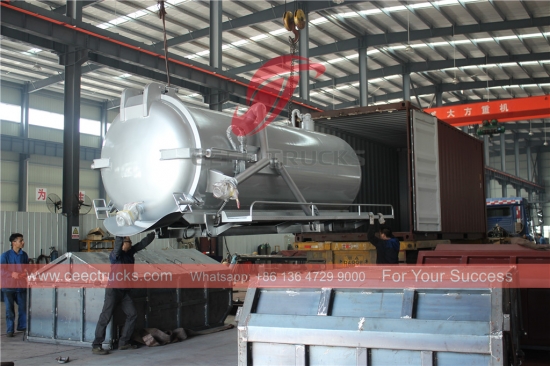 牙买加客户购买8000升污水真空罐车车身套件,中国知名品牌真空泵,喷漆和标识视需求而定。该套件将安装在客户国产五十铃NPR和日野500型右舵底盘上。