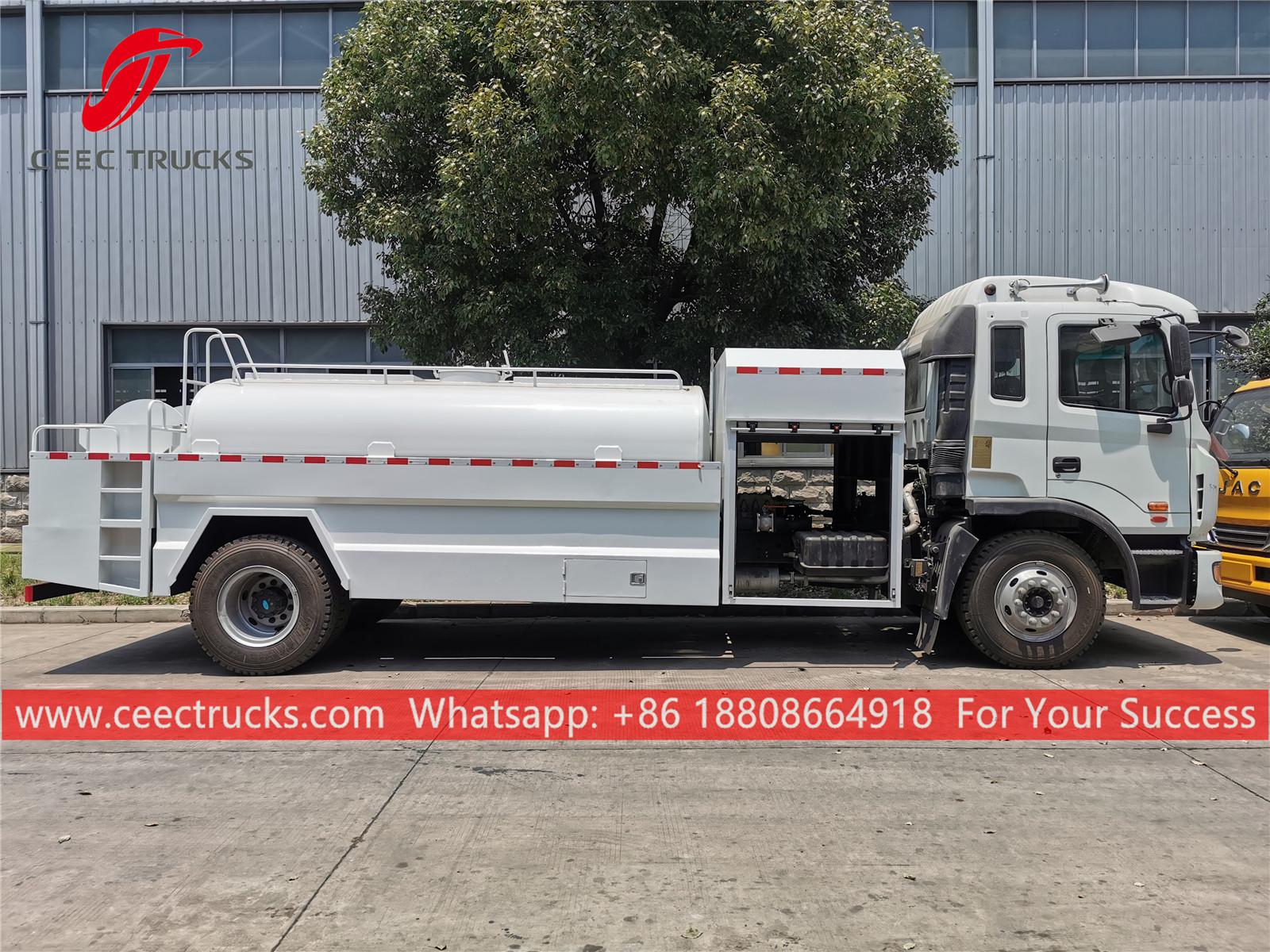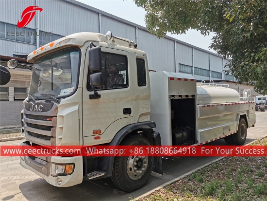 江淮8000升高压洒水车,江淮4x2底盘,5档手动变速箱,玉柴190马力柴油发动机,名牌水泵、高压软管和喷嘴。所有喷漆和标识均根据客户需求定制。