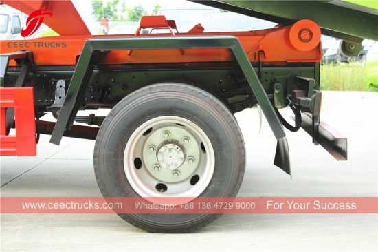 蒙古8立方米滚装垃圾车,五十铃4x2底盘,五十铃190马力柴油发动机,MLD 6档手动变速箱,高强度吊钩装载系统,配备各种垃圾容器