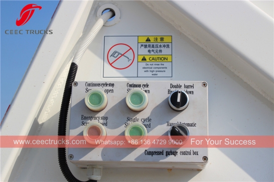 该系列垃圾压缩车配有自动垃圾箱升降装置、垃圾压缩系统、垃圾卸料板等,垃圾压缩车尾气排放达到欧洲标准,安全环保。