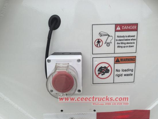 ● 设有紧急停止按钮,无论在任何情况或地点,都能立即停止垃圾压缩装置,保障操作人员和设备的安全。