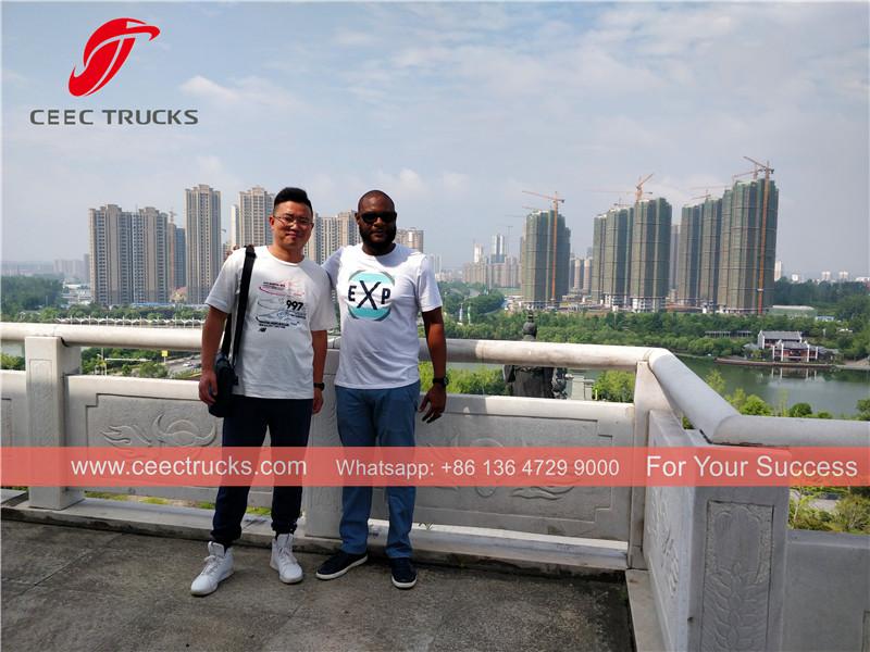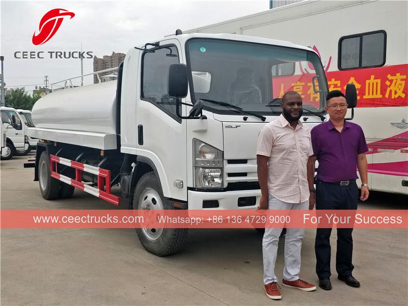 客户在我们工厂检查了他的五十铃洒水车,驾驶后他对这辆车非常满意。