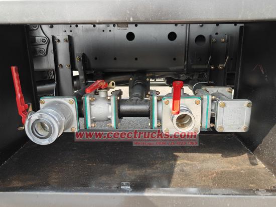 车体上部为椭圆形碳钢水箱,容积为10立方米,配备一台威龙80QZF-60/90S水泵,两侧设有管路收纳箱,罐体后部为工作平台,平台上设有高压喷水枪和便携式消防泵。此外,该车还具备前喷水嘴、后喷水嘴和水炮喷射监控三种喷洒模式,可满足多种洒水作业需求。