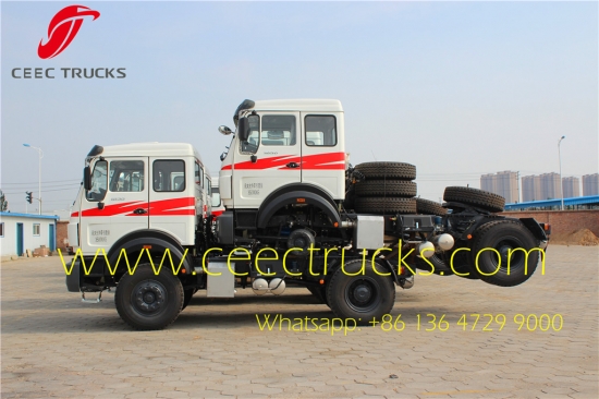 北奔4*2牵引车供应商,奔驰技术车轴装置,潍柴WP10.290发动机,FAST 9档手动变速箱,性能卓越,最大牵引重量35000公斤,专供肯尼亚、坦桑尼亚、喀麦隆