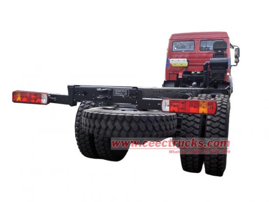 北奔6x6全轮驱动货车底盘采用北奔NG80B 2642APZ长驾驶室底盘,轴距为4450+1450mm。它配备潍柴WP12.420E32发动机、法仕12JS200TA变速箱、12.00R24轮胎、6x6全轮驱动、ZF8098液压助力转向系统、德国梅赛德斯-奔驰技术车桥、前驱动桥7吨双蹄式气动制动器、带轮毂减速器的18吨双蹄式气动制动器以及双级减速后驱动桥,最大载重可达40吨。