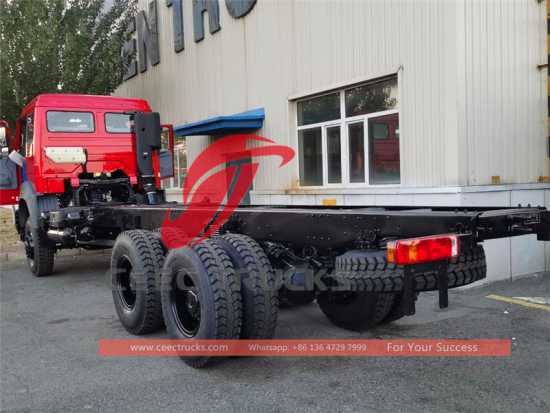 刚果北奔6*6驱动载货车底盘,军工品质保证,知名品牌潍柴420马力柴油发动机,12JS200T极其可靠的变速箱,4450+1450毫米轴距,重型加强型4U型螺栓悬挂系统,梅赛德斯奔驰技术前桥和后桥,奔驰技术NG80B驾驶室。