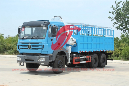 北奔 5 吨起重机卡车,北奔 6x4 右侧驾驶底盘,法士特 12 档手动变速箱,潍柴 380HP 柴油发动机,徐工 5 吨折臂起重机,货厢尺寸可选,油漆和徽标取决于要求。