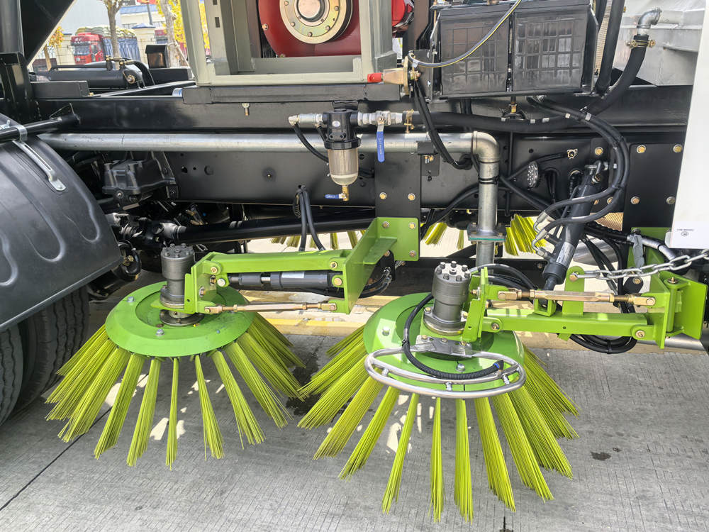 一个-†五十铃道路清扫车采用高强度尼龙刷毛,主副刷协同工作,可调节速度和接地压力,以适应不同的路况。刷子角度可自动调节,确保清扫无死角。同时,具备自动避障功能,遇到障碍物可快速抬起。
