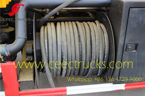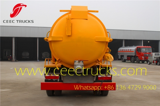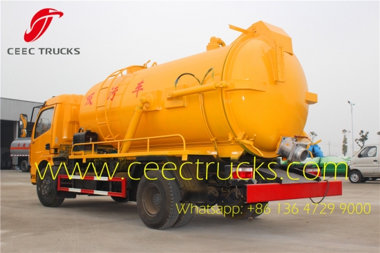 3、配置:碳钢材质圆形罐体,大功率真空泵,自卸式车体,后盖可液压开启,后盖设有自流孔及专用阀门,吸入高度可达5-8米,配备专用吸污管;