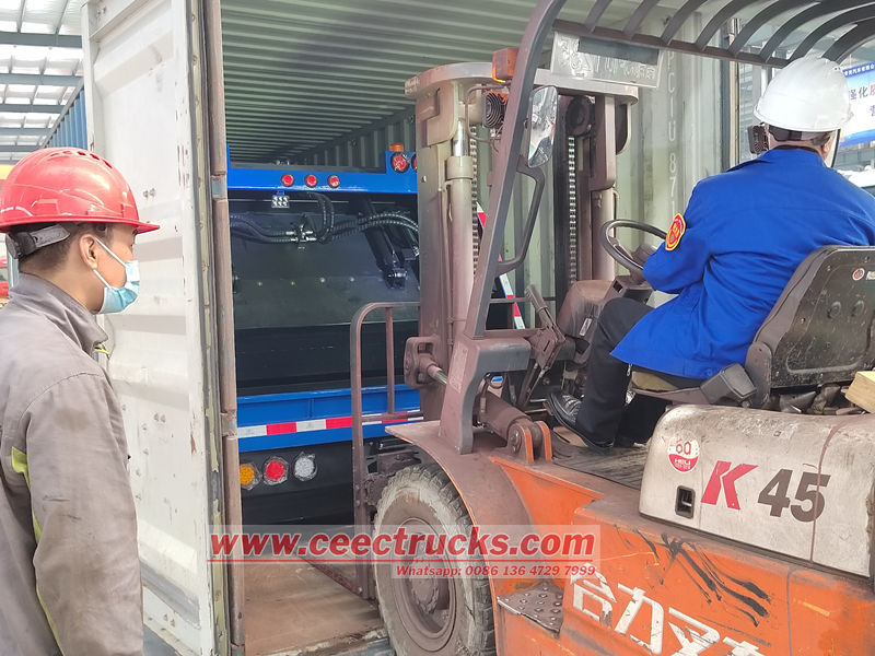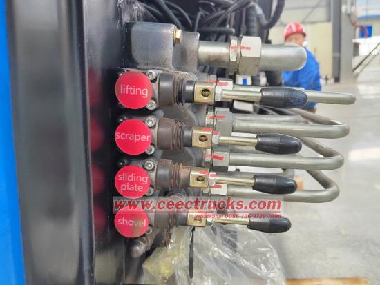 卸货:到达卸货地点后,推料刀片将垃圾从货箱后门推出。