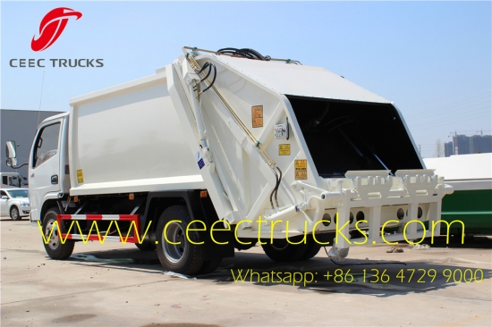缅甸5立方压缩式垃圾车采用东风3300mm轴距4*2左舵底盘,朝柴95马力发动机和5档手动变速箱,操作简便。压实车身采用优质碳钢Q235材质。
