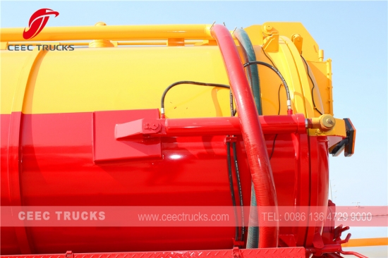 低价销售东风 10000L 化粪池清空器,康明斯 170HP 柴油发动机,6 档手动变速箱,高强度钢材料罐车可达 10 立方米,威龙真空泵,液压升降废物排放装置,喷漆和标识取决于要求。