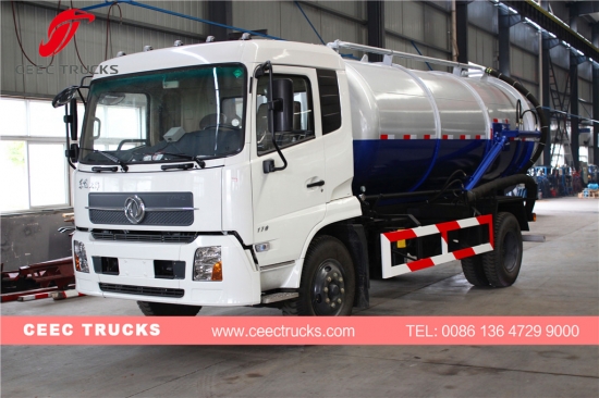 东风10000L化粪池清空器,玉柴160HP柴油发动机,6档手动变速箱,高强度钢材料罐车可达10立方米,威龙真空泵,液压升降废物排放装置,喷漆和标识根据要求而定。