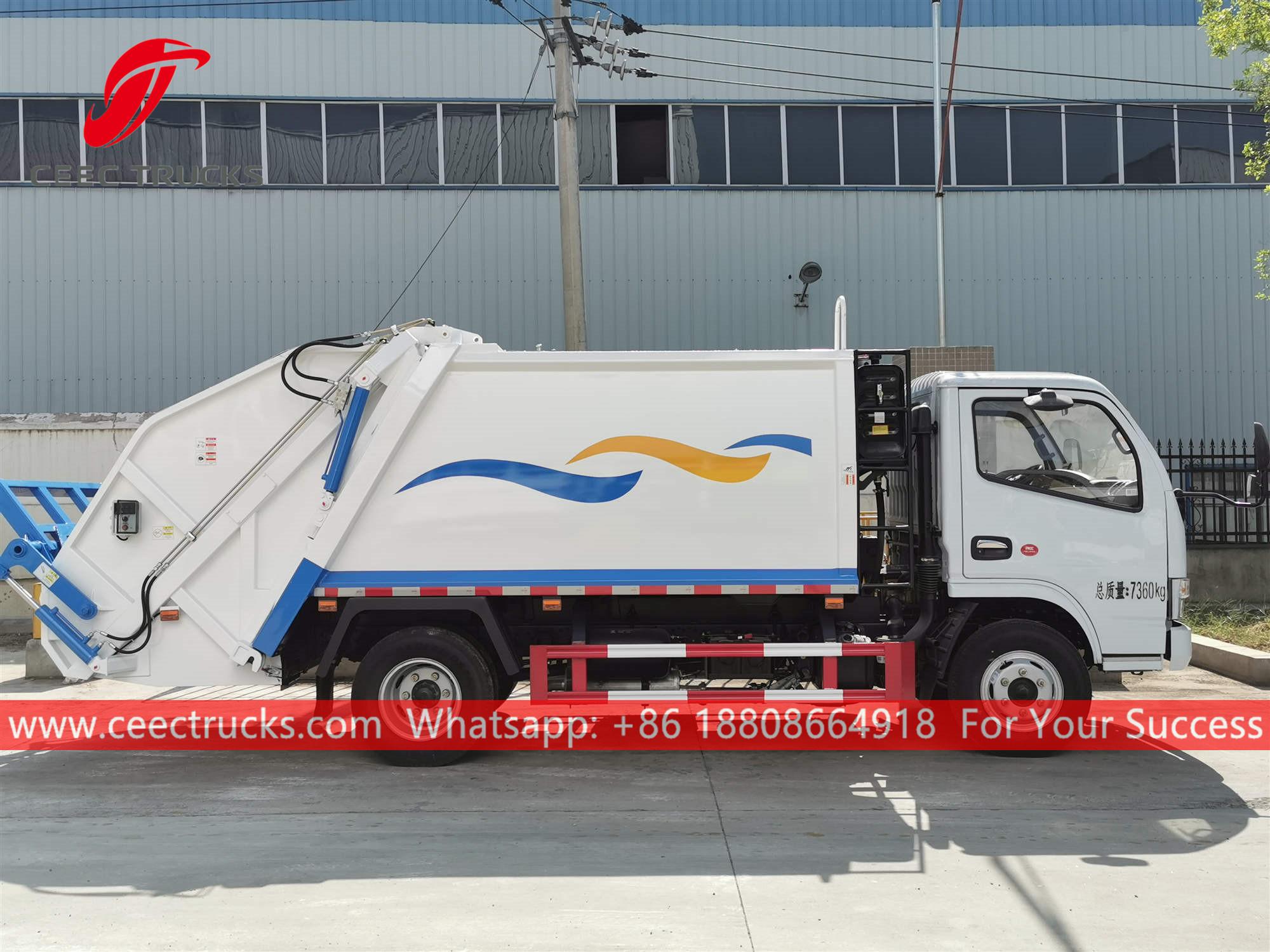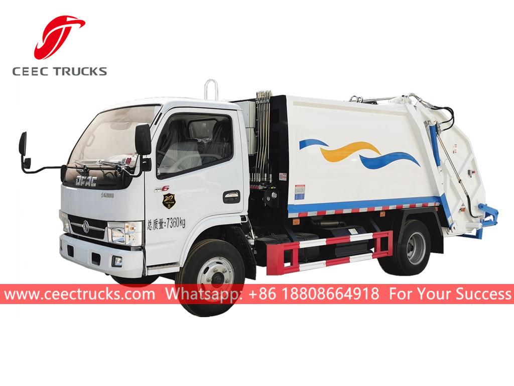 东风6立方后置式垃圾车,底盘采用玉柴115马力柴油发动机,5档手动变速箱。PLC控制箱,操作简便。所有喷漆和标识均根据客户要求定制。