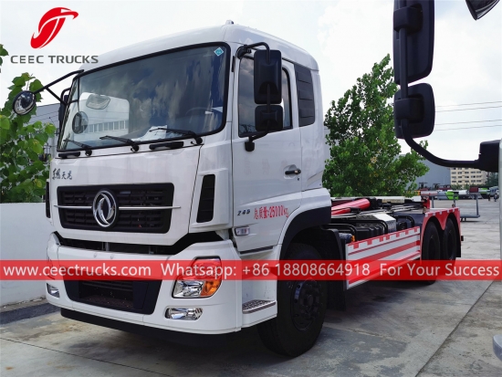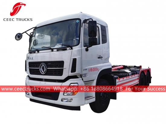 东风20吨钩装垃圾车,东风6x4底盘,270马力柴油发动机,8档手动变速箱,高强度钩装系统,可选配各种垃圾箱。所有喷漆和标识均根据客户需求定制。