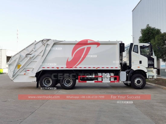 一汽20立方米垃圾压实车,一汽6×4左舵重型卡车底盘,搭载锡柴350马力柴油发动机,法士特12档变速箱。采用CAN总线控制系统,操作简便。所有喷漆和标识均根据客户要求定制。