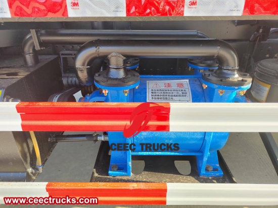 (2)吸污功能附件:配备取力器、传动轴、真空吸污泵、高压成型罐、水分分离器、油气分离器、多路换向阀、吊杆、自排阀、吸粪枪及管网系统。