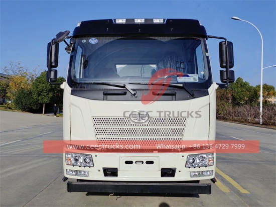 一汽10立方米污水泵油罐车(还称为一汽J6K污水罐车、一汽J6K 4×2真空罐车、 一汽6轮真空吸污车, 一汽J6K下水道吸盘, 一汽液压真空车,中国真空卡车制造商)是用于环卫和废物管理行业,用于运输和清除污水系统中的液体、固体和污泥。它配备一台大容量泵,用于从污水管道、化粪池和其他地下储存系统中抽取废物。收集到的废物随后被储存在卡车上的一个大型储罐中,以便运输至合适的处置设施。
