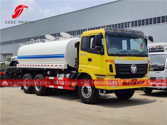 福田 20,000L 水罐车,福田 6x4 底盘,法士特 9 档手动变速箱,潍柴 270HP 柴油发动机,知名品牌水泵,可选配前、中、后喷嘴,所有喷漆和标识均根据要求而定。