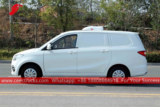 福田迷你冷藏车,采用CEEC玻璃纤维增强塑料材质,保温层厚度超过8毫米。标配美国开利制冷机组,性能卓越。福田左驾底盘,115马力发动机,5档手动变速箱。