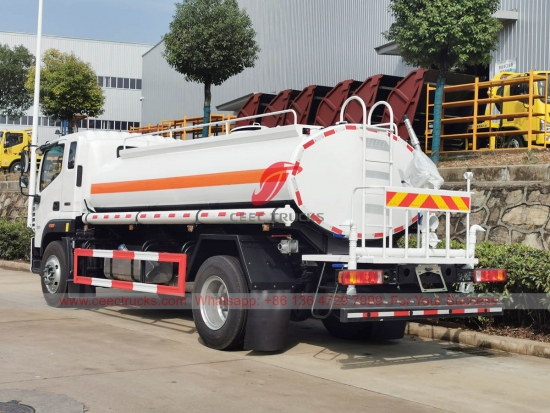 福田8000升运水车,福田4x2右舵底盘,法士特8挡手动变速箱,康明斯220马力柴油发动机,知名品牌水泵,可选配前、中、后喷嘴。所有喷漆和标识均根据客户需求定制。