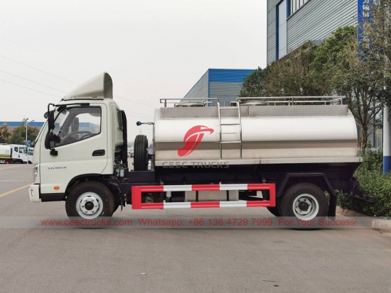4000L 牛奶罐车 福田 (也称为 FOTON 不锈钢水罐车、FOTON 4×2 饮用水罐、FOTON 不锈钢奶罐车制造商、定制 FOTON 饮用水车、FOTON SS 304 奶罐车) 是用于道路冲洗、树木草坪绿化、高层建筑清洗、道路及工厂建设,具有冲洗、洒水、输送水、消防等功能。