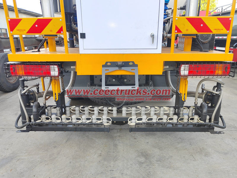 车辆后部配备可伸缩喷杆(长度2米至6米可调),喷杆配备高压离心泵和扇形喷嘴,喷幅及流量可通过车载电脑无级调节(0.3至3升/平方米),满足渗透涂装、粘结涂装、封闭涂装等不同工艺的需求。