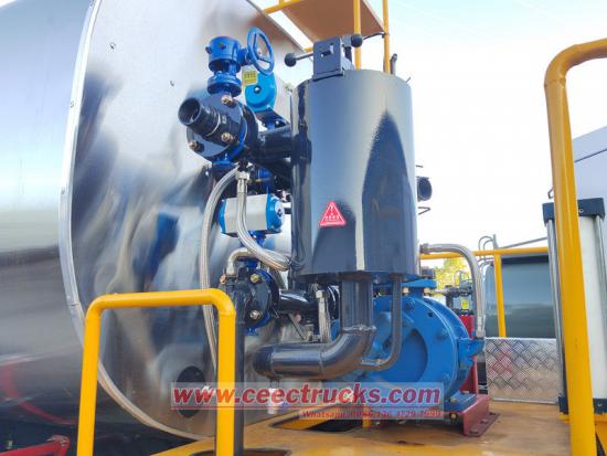 豪沃全自动沥青洒布车采用大容量保温罐,双层不锈钢结构,中间填充高密度保温材料,有效减少热量损失。内置导热油循环加热系统,可选用柴油燃烧器或燃气加热器,快速加热沥青,确保其保持流动性,避免施工中断。罐内的温度传感器和智能控制系统实时监控并自动调节加热功率,使温度波动保持在±3°C以内,确保沥青性能稳定。
