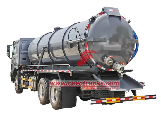 Optional to be mounted with MORO PM110W vacuum pumpHOWO重型6x4真空下水道车该款车型基于坚固耐用、功能多样的中国重汽豪沃车辆生产,专为高效污泥和污水管理而设计。配备一个容量为18,000升的污泥罐,由Q235碳钢制成,罐壁厚度为6毫米,罐盖厚度为8毫米。HOWO 18000升抽油泵车专为应对严苛环境而设计。HOWO化粪池清空器采用可靠的 HOWO 底盘,采用 6x4 驱动类型,确保出色的崎岖道路能力和各种地形上的稳定性。这款污水处理车的核心是强劲的潍柴WP10.340E32柴油发动机,在2,200 rpm转速下可输出惊人的340马力(240千瓦)功率。发动机在1,100至1,600 rpm转速范围内可达到1,350 N·m的峰值扭矩,从而提供污水泵车拥有处理重载和挑战性任务所需的动力和性能。尽管动力强劲,该卡车仍符合欧3排放标准,体现了性能与环保之间的平衡。