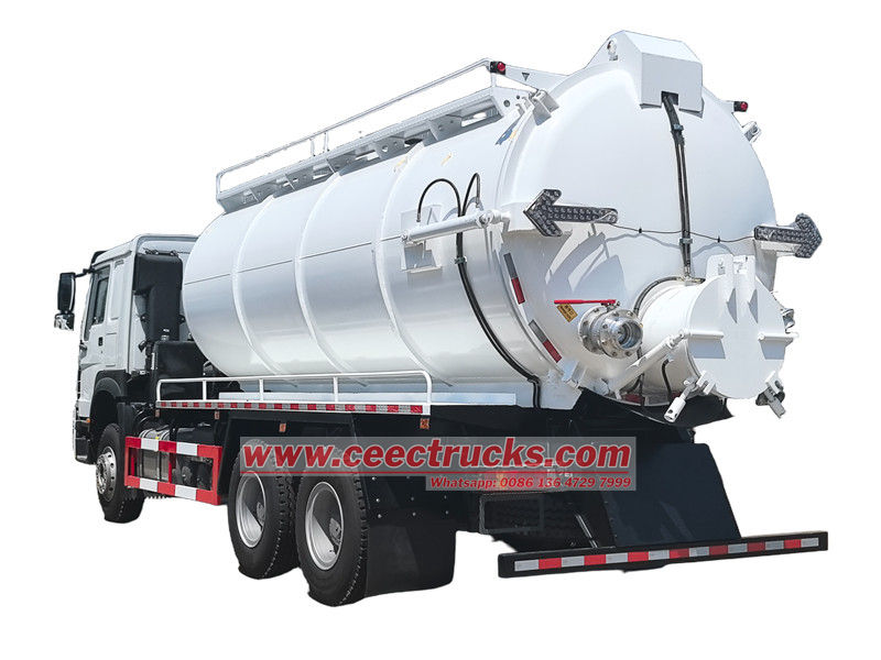 RHD, Jurop vacuum pump avaiableHowo 20,000升真空罐车是一款专为城市环卫和工业废水处理而设计的专用车辆,主要用于吸取、运输和排放污泥、污水和混合沉积物。
