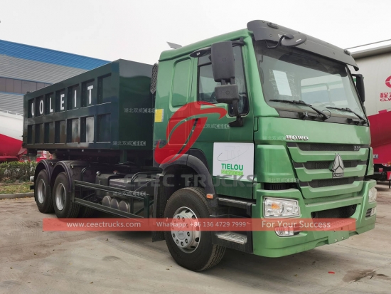 豪沃吊钩装载机 (也称为HOWO吊钩装载机、吊钩式垃圾车、滚装式垃圾车、HOWO吊钩式垃圾车、HOWO垃圾收集车、可拆卸集装箱垃圾车、勾臂式垃圾车HOWO ) 是 用于收集和运输城市生活垃圾,广泛应用于住宅小区、医院、市政环保部门、垃圾收运站等。