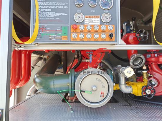 3.泵系统和消防炮的性能: 高性能泵系统是消防车的心脏。豪沃消防车的泵系统可提供60L/s@10bar的流量,这在灭火作业中至关重要。同时,9米的吸水高度和≤35s的引水时间也保证了在各种复杂环境下的适应性。顶部安装的消防炮(例如本例中水射程≥55m,泡沫射程≥45m)大大增强了灭火的灵活性和效率。